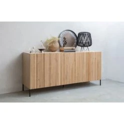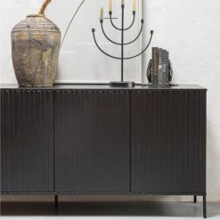WOOOD Buffet Bas 4 Portes Sculptées En Bois Et Métal Noir