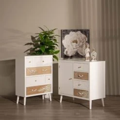 Altobuy Buffet 1 Porte 4 Tiroirs Bois Massif Et Motif Floral