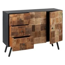 Altobuy Buffet 2 Portes 3 Tiroirs Acier Et Bois Massif