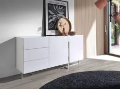 Angel Cerda Buffet Blanc Brillant Trois Tiroirs Simples Y En Acier Inox