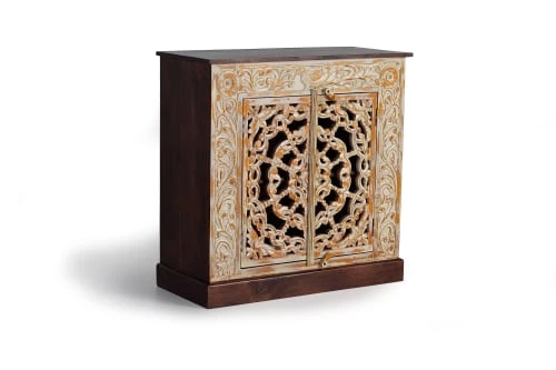 GINER Y COLOMER Buffet En Bois De Manguier Sculptée à La Main