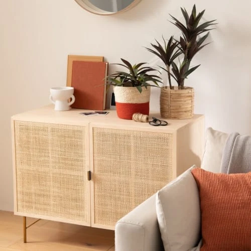 - Intégré subtilement sur les 2 portes en hêtre massif, le cannage en rotin apporte ce petit quelque chose en plus.