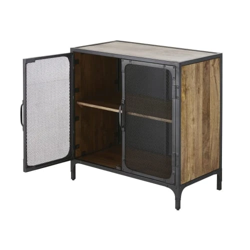 Panneau de fond, encadrement des portes, poignées et piètement : métal finition coloris noir