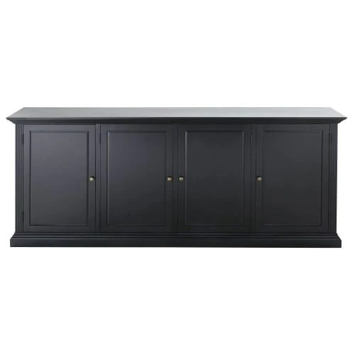 Structure : Mélange de panneaux de fibres de moyenne densité et de pin massif, finition peinture acrylique coloris noir et vernis acrylique transparent mat, effet coups de pinceau.