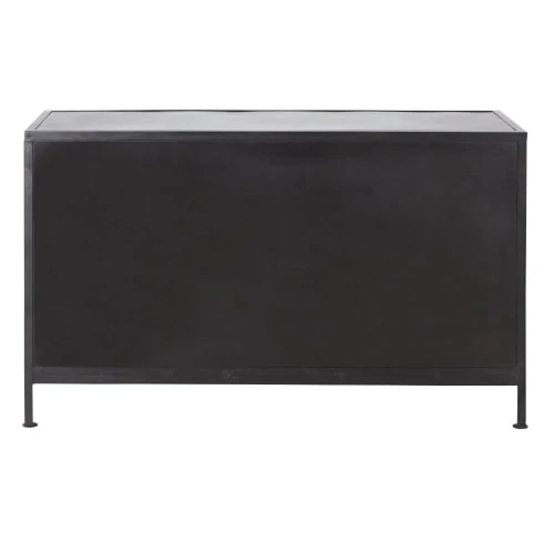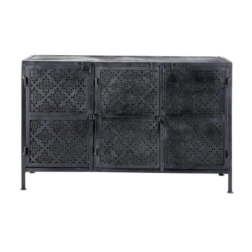 Si vous êtes pour le mélange des styles, vous serez séduit par le buffet en métal noir MENARA ! Sobre et épuré, il reprend les codes du style indus avec une pointe d’exotisme. Doté de 3 portes à motifs ethniques ajourés en façade, ce meuble de rangement vous permettra de ranger et de protéger votre vaisselle ou votre linge de maison. Côté déco, il se combinera facilement avec un intérieur contemporain ou factory : n’hésitez pas à y associer une touche de couleur !</p>