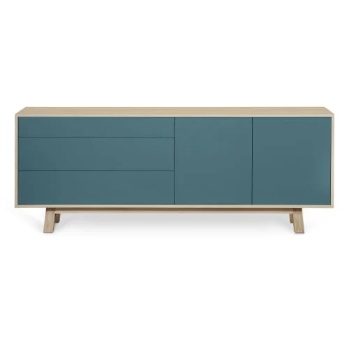 – Piétement, base du buffet et étagère en frêne massif de France – finition légèrement blanchie