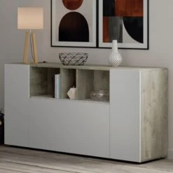 Dmora Buffet 2 Portes Effet Bois Blanc Et Béton