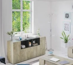 Dmora Buffet 5 Portes Effet Bois Blanc Béton