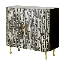 Maisons Du Monde Buffet 2 Portes Noir Motifs En Marqueterie D’os