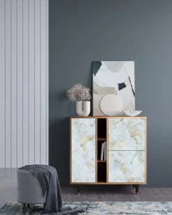 Storyz Buffet Bleu 2 Tiroirs Et 2 Portes L 94 Cm