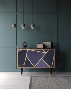 Storyz Buffet Bleu 3 Tiroirs Et 1 Porte L 125 Cm