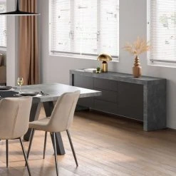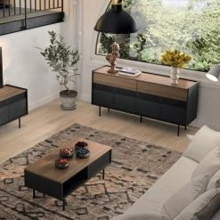 TEMAHOME Buffet Effet Bois Béton Et Noir