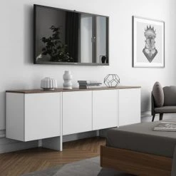 TEMAHOME Buffet Placage Noyer Et Blanc Laqué