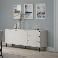 Tenzo Buffet En Bois 2 Portes 3 Tiroirs Blanc