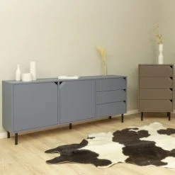 Tenzo Buffet En Bois 4 Portes L173cm Gris Anthracite
