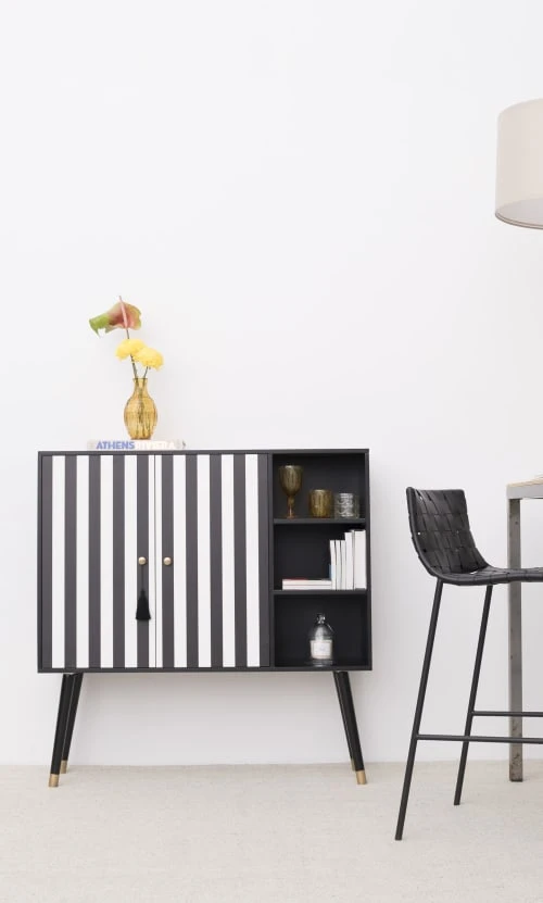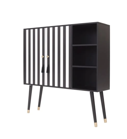 Son aspect asymétrique avec l’étagère latérale et l’armoire offrent de nombreuses possibilités de rangement et décoration.