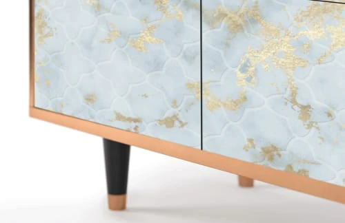 Pieds : Bois naturel avec extrémités en cuivre 12,5 cm de hauteur