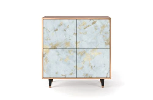 Épuré, sans poignées, ses quatre portes homogènes s’ouvrent d’une simple pression.