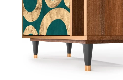 Pieds : Bois naturel avec extrémités en cuivre 12,5 cm de hauteur